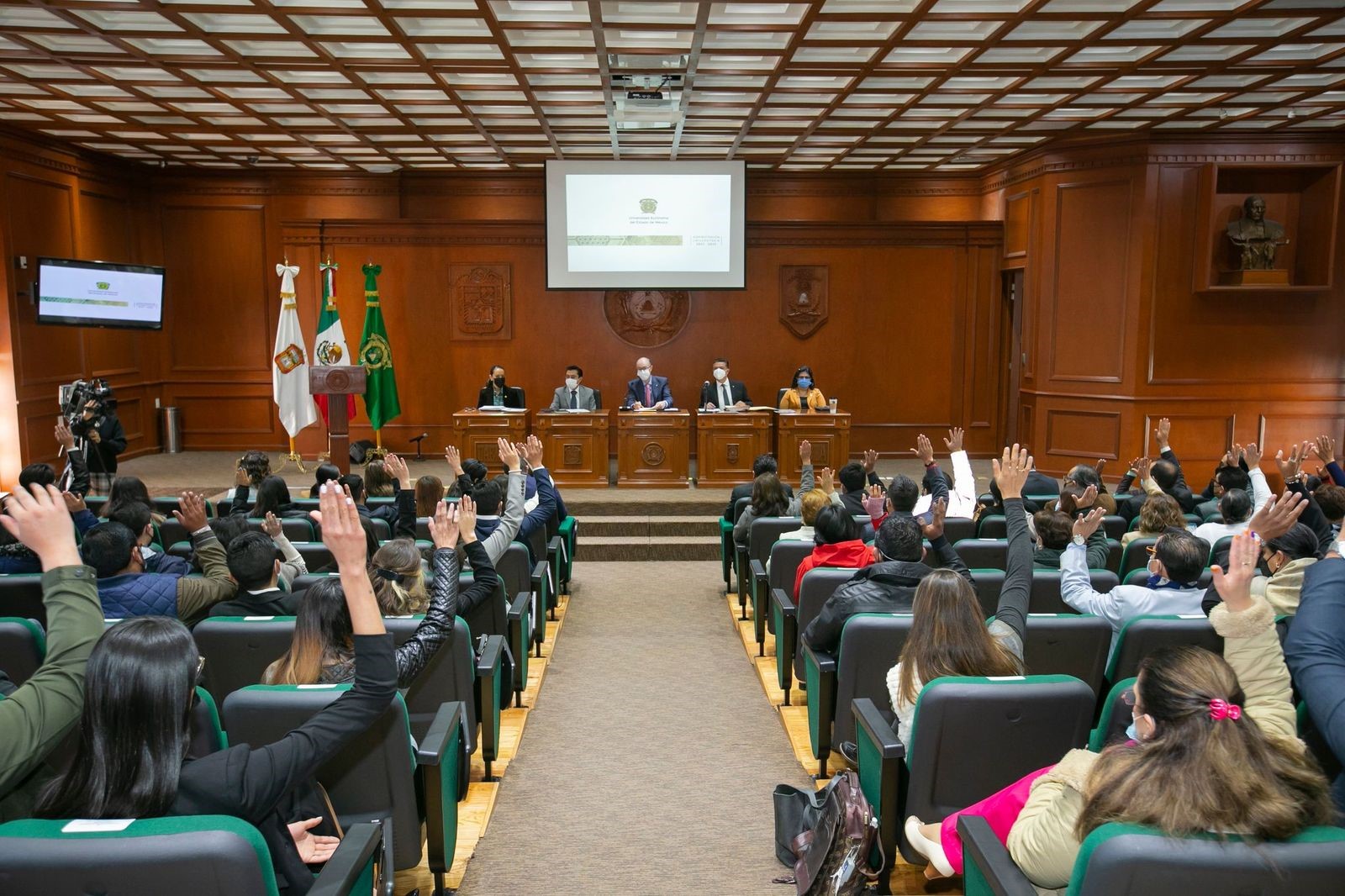 Compartir La disciplina financiera de la Universidad Autónoma del Estado de México (UAEMéx), hizo reducir 82.1 por ciento la deuda con el Instituto de Seguridad Social del Estado de México y Municipios (ISSEMyM). El rector Carlos Eduardo Barrera Díaz, durante la sesión ordinaria del H. Consejo Universitario de la institución, mencionó que los resultados de la política de contención de gastos y ahorro en la Autónoma mexiquense, finanzas sanas, cumplimiento a los compromisos con la comunidad auriverde y mejora en las condiciones educativas. Al presentar los beneficios de dichos lineamientos durante el año pasado, el secretario de Finanzas de la Máxima Casa de Estudios mexiquense, Octavio Bernal Ramos, destacó que se ha fortalecido la infraestructura física y tecnológica, mediante la renovación de equipos de cómputo, la modernización de instalaciones, así como la entrega de unidades del Sistema de Transporte Universitario Potrobús, entre otros beneficios. Cabe mencionar que tras el término de la sesión del H. Consejo Universitario y acompañado de los consejeros y consejeras de la UAEMéx, el rector Carlos Eduardo Barrera Díaz entregó dos unidades de Potro Verde Bus, que con tecnología amigable con el medio ambiente, operan con gas natural, lo que permite reducir 95 por ciento emisiones contaminantes, 90 por ciento de óxidos de nitrógeno y cerca de 20 por ciento de gases de efecto invernadero. Además, los Potro Verde Bus, que se suman a la red de transporte que usa la comunidad estudiantil de manera gratuita para acudir a sus espacios académicos, cuenta con rampas para personas con sillas de ruedas y están equipados con racks para que el alumnado pueda trasladar sus bicicletas. En esta misma sesión, el titular del Órgano Interno de Control en la institución, Victorino Barrios Dávalos, ofreció su segundo informe anual de actividades, a través del cual dio cuenta del trabajo realizado a través de sus dos áreas jurídicas, que permiten dar cumplimiento a lo establecido en las normas y leyes universitarias y constitucionales para prevenir actos de corrupción y fortalecer la transparencia. Navegación de entradas Estudiantes del IPN no participaron en los hechos en el CCH Naucalpan Expo Profesiográfica 2023 de Nivel Superior