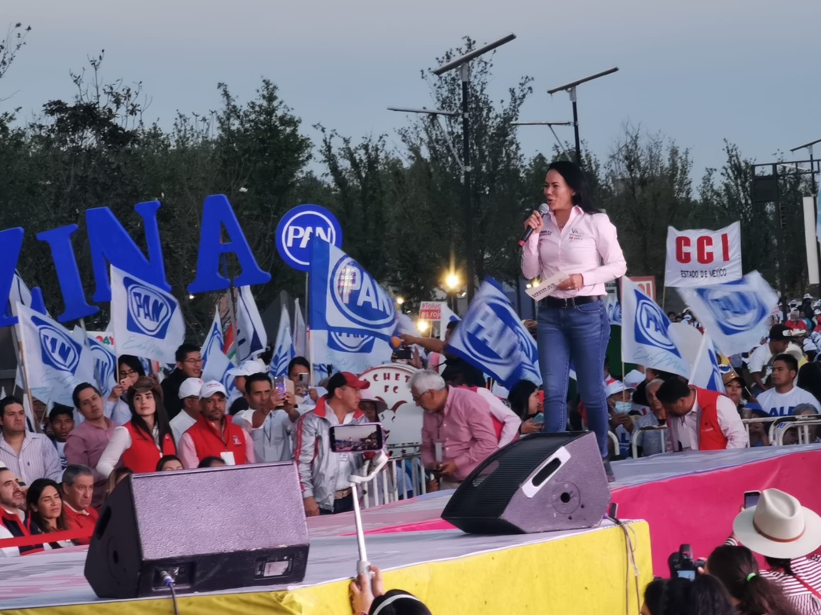 Compartir Redacción México Político La candidata de la Coalición Va Por el Estado de México (PAN, PRI y PRD), Alejandra Del Moral aseguró que ganará la gubernatura, y admitió que hay “tiro” en la contienda porque el futuro de México pasa por el EdoMex. “Las encuestas no votan, voy a ganar; voy a ser Gobernadora del Estado de México”, dijo y dejó en claro que esta elección es de dos, de “Alejandra contra Delfina”. En evento celebrado en Toluca, convocó a los mexiquenses a votar por ella porque es la candidata de la unidad, honesta y valiente que no los defraudará, dijo. Del Moral explicó que su gobierno será inclusivo sin excluir a nadie, «gobernaré con la sociedad civil y no habrá en él dos clases de personas». Durante el mitin realizado en la tarde-noche de este domingo en Toluca, frente al Palacio de Gobierno del Estado de México, la candidata de “Va Por el Estado de México” les manifestó a los asistentes que su administración dará prioridad a la seguridad pública en la entidad porque está convencida de que “los abrazos” no funcionan. Manifestó que su experiencia como servidor público y el trabajo honesto que ha realizado durante muchos años en la entidad, le permiten asegurar con claridad a los mexiquenses que su gobierno reorientará en la entidad el transporte público; incrementará el bacheo; canalizará mayores recursos para fortalecer el turismo; y mejorará el medio ambiente. “Hay que aplicar la ley contra la violencia porque México es considerado uno de los países más violentos del mundo”, aseguró a los asistentes panistas, priistas, perredistas, de Nueva Alianza, y de la Confederación Nacional Campesina que le acompañaron en el evento. Navegación de entradas Comprar Iberdrola, señal del fin del neoliberalismo: Sheinbaun Estudian plaguicidas para su uso razonable en Temascaltepec