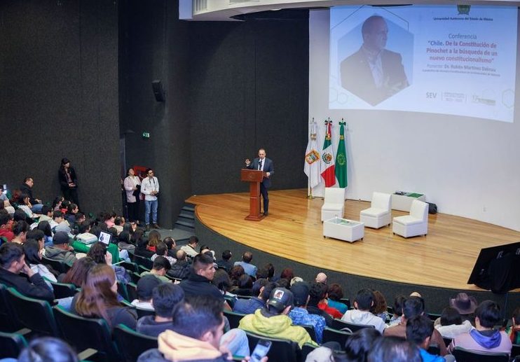 Compartir El catedrático de Derecho Constitucional en la Universidad de Valencia, Rubén Martínez Dalmau, impartió, en el Auditorio “Ing. José Yurrieta Valdés” del Edificio Administrativo de la Universidad Autónoma del Estado de México (UAEMéx), la conferencia magistral “Chile. De la Constitución de Pinochet a la búsqueda de un nuevo constitucionalismo”. El secretario de Extensión y Vinculación de la UAEMéx, Francisco Zepeda Mondragón, en compañía de la alcaldesa de Tecámac, Mariela Gutiérrez Escalante, dieron la bienvenida al catedrático y refirieron la importancia de reflexionar en torno al proceso constituyente que se vive en Chile, como un momento coyuntural en la historia de Latinoamérica. “Nos invita a hacer un análisis basado en el enfoque fundamentado en la participación ciudadana y la importancia que tiene el fortalecimiento de la cultura política para promover la toma de conciencia entre ciudadanas y ciudadanos que conformamos la sociedad actual”, dijo el universitario. Martínez Dalmau, ante estudiantes de la UAEMéx, abordó la situación actual del proceso constitucional de Chile bajo tres aspectos para la reflexión: el por qué todo empieza con el golpe de estado de Augusto Pinochet al gobierno democrático de Salvador Allende, cuál fue el problema de la constitución pinochetista de 1980 y sus implicaciones, impidiendo romper con esa construcción y avanzar a un proceso democrático; cómo se produjo el estallido social hacia un nuevo constitucionalismo y cómo ha evolucionado el proceso constituyente y sus propuestas fallidas. Martínez Dalmau agradeció el espacio que la UAEMéx otorgó para su conferencia magistral. El exponente es un profesor, jurista, politólogo, historiador del arte y político español. Ocupó el cargo de vicepresidente segundo y consejero de Vivienda y Arquitectura Bioclimática de la Generalidad Valenciana, puesto al que accedió en junio de 2019. Navegación de entradas Delfina, Horacio, Higinio y el Grupo Texcoco rumbo a 2024 Invierno con un súper El Niño: temperaturas más cálidas e incremento de lluvias