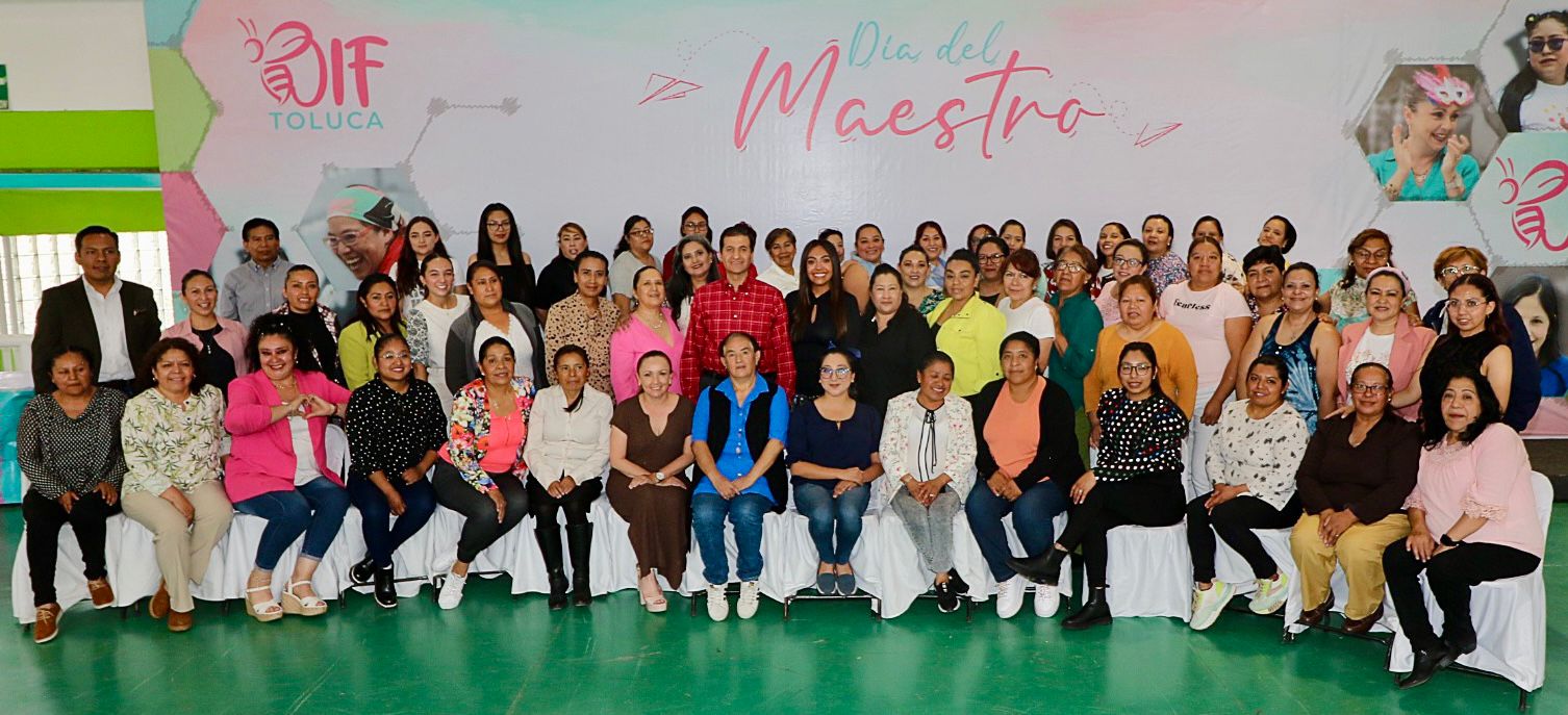 Compartir Por su incansable trabajo, amor por la enseñanza y esfuerzo diario en la construcción de una mejor sociedad, el Sistema Municipal DIF y el gobierno municipal de Toluca reconocieron a maestras y maestros en la capital mexiquense. Son cerca de 80 homenajeados que entregan su conocimiento y cariño en favor de más de 400 pequeños de las siete Estancias Infantiles y del Programa de Alfabetización, donde también apoyan a adolescentes y adultos mayores a completar sus estudios. La Presidenta del DIF Toluca reconoció la labor y gran corazón de los profesores porque “tienen en sus manos la semilla del presente y futuro de Toluca, al atender con vocación a la sociedad, pues son pilar fundamental de la misma”. El alcalde externó su orgullo de que personas con gran compromiso pertenezcan a la gran familia del DIF y contribuyan a la formación de pequeños y grandes, por lo que enalteció el encargo diario que logran con creatividad y amor. Navegación de entradas DIGNIFICAN LABOR DE TRABAJADORES DEL RASTRO CAPITAL SEMiLLA: Eje para empoderar a la mujer en Huixquilucan, señala Adri Olvera