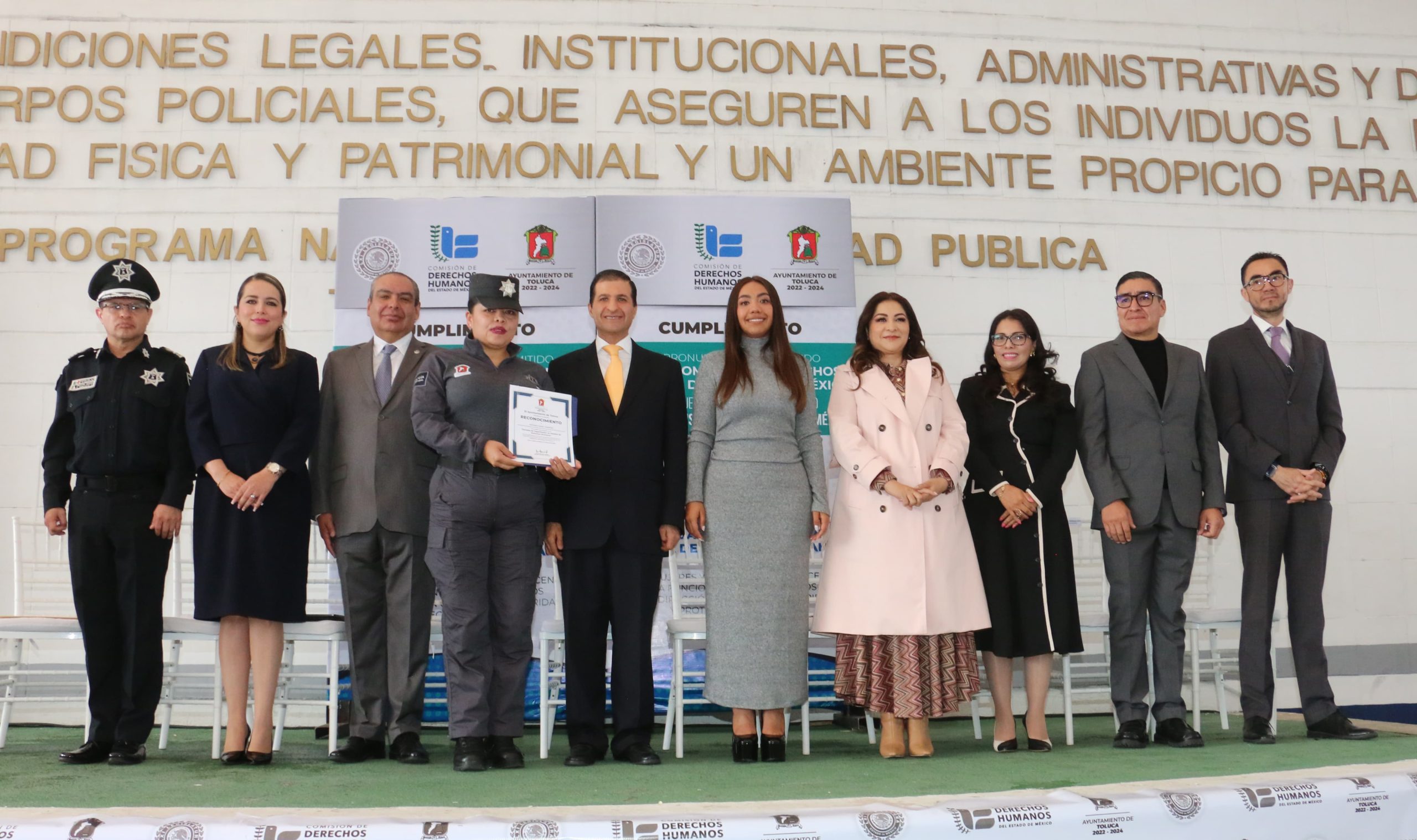 Compartir Toluca da el ejemplo como primer municipio del Estado de México en integrar acciones orientadas a difundir, prevenir y proteger los derechos a la libertad de expresión y de reunión de niñas, adolescentes y mujeres; cumpliendo con responsabilidad y deber, el pronunciamiento emitido por la Comisión de Derechos Humanos del Estado de México (CODHEM). Además, al atender el Acuerdo del Exhorto de la Sexagésima Primera Legislatura del Estado de México, se garantiza que los cuerpos de policía municipal se conduzcan con pleno respeto a los derechos humanos, cumpliendo los protocolos y procedimientos del uso de fuerza y el fortalecimiento de los mecanismos de prevención, investigación y sanción de abusos policiales. Por ello, la Presidenta de la Comisión de Derechos Humanos del Estado de México (CODHEM), Myrna García, reconoció el compromiso de Toluca con los derechos humanos y la igualdad, garantizando a la ciudadanía una vida digna y segura. El Presidente Municipal, Juan Maccise, acompañado de la Presidenta del Sistema Municipal DIF, Paulina Arriaga y del Director de Seguridad y Protección de Toluca, Eduardo González, entregó las carpetas de cumplimiento a los exhortos emitidos por la CODHEM, así como por la Comisión de Seguridad Pública y Tránsito de la LXI Legislatura del Estado de México. Desde la Academia de Policía de Toluca, el Alcalde enfatizó, “somos el primer municipio en cumplir a cabalidad con ambos exhortos, por lo que seguiremos impulsando acciones, para que todas y todos, tengamos la certeza de que el ayuntamiento es un garante de la paz y la seguridad de quienes vivimos en la capital de todos los mexiquenses”. Comprometidos con la ciudadanía se ha capacitado a mil 939 elementos de la fuerza operativa, quienes han jurado desempeñarse con honor, disciplina y lealtad; junto a todos los integrantes del ayuntamiento, han sido exhortados por el Alcalde a mantenerse en cumplimiento del estado de derecho, respetando siempre los derechos humanos. También, aseguró que Toluca «representa un espacio neurálgico para las movilizaciones de personas y grupos colectivos que exigen reivindicar sus derechos fundamentales y libertades». Al dirigirse a los elementos policiales, el Presidente de la Diputación Permanente de la LXI Legislatura Local, Jesús Izquierdo, resaltó las medidas implementadas que promueven el respeto y la seguridad ciudadana. Asimismo, expresó su deseo de que los ciudadanos se sientan orgullosos de su policía municipal. La policía es un pilar fundamental en la construcción de una sociedad segura y justa, por lo cual, el ayuntamiento de Toluca seguirá impulsando acciones para garantizar la paz y la seguridad de todos los habitantes de la capital mexiquense. Navegación de entradas Cultura Impar: La importancia política del Cabildo en un ayuntamiento MAYORES OPORTUNIDADES DE EMPLEO PARA TOLUCA