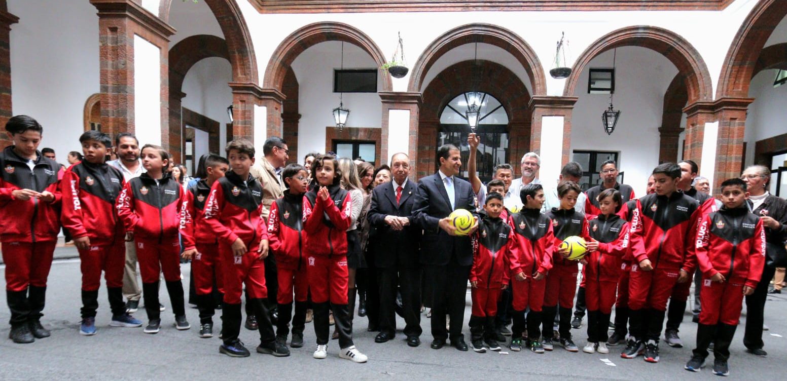 Tras la entrega de uniformes y equipamiento, el Alcalde animó a los 15 futbolistas, de entre 9 y 12 años de edad, a portar con orgullo su identidad toluqueña, a mantener la humildad para aprender de cada experiencia y a disfrutar la alegría de compartir su amor por el futbol con otros niños del mundo.