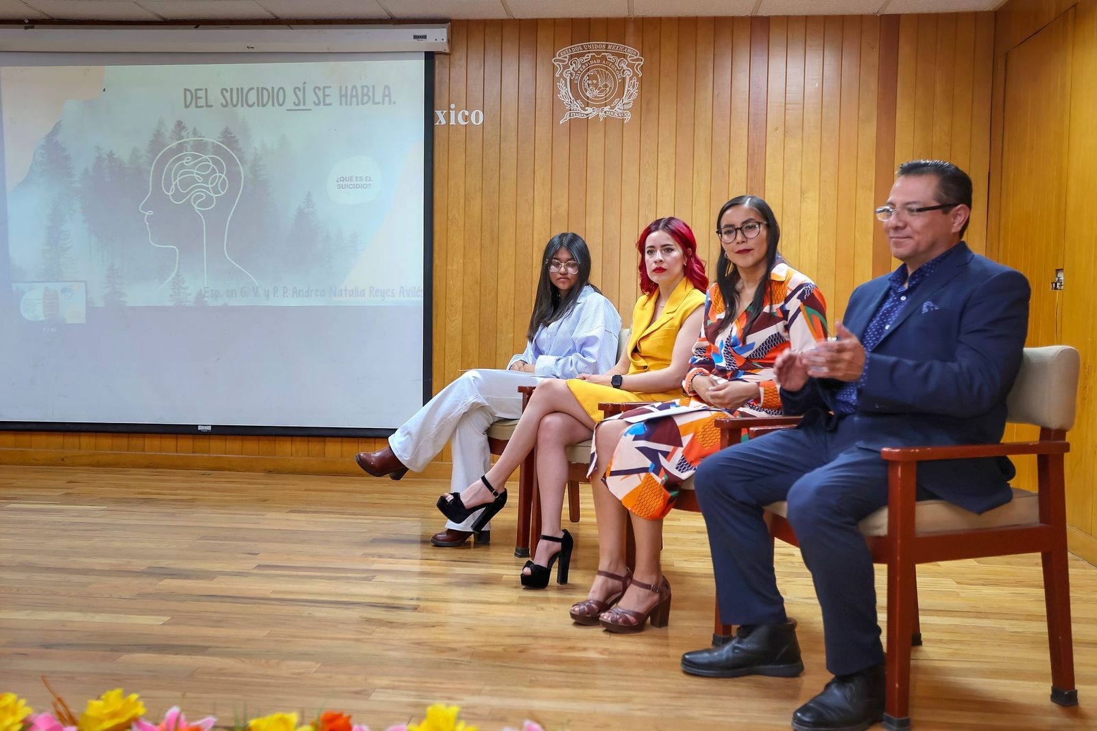 En presencia de la directora General de Comunicación Universitaria, Ginarely Valencia Alcántara, el subdirector académico, Joel Isac Ortiz Murillo, y la alumna Kenia Guadalupe García Quiroz, la ponente explicó que es importante hablar de la salud mental y el suicidio, pues a nivel mundial, aproximadamente 800 mil personas mueren al año por esta causa.