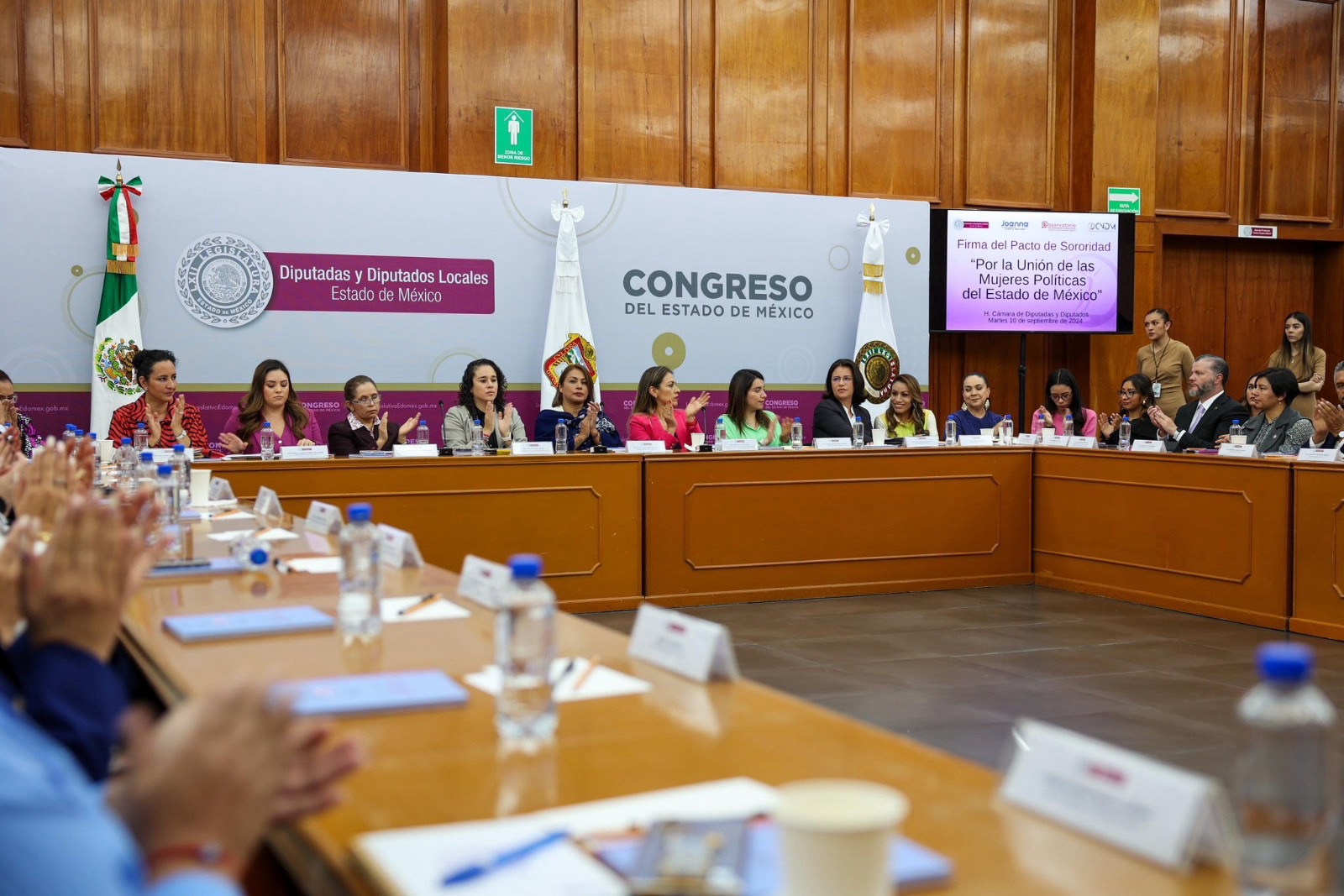 Compartir La Consejera Presidenta del Instituto Electoral del Estado de México (IEEM), Amalia Pulido Gómez, mediante la Firma del Pacto de Sororidad “Por la Unión de las Mujeres Políticas del Estado de México”, refrendó el compromiso de la institución con la unidad, el respeto y la alianza entre mujeres, para identificar y actuar ante la violencia política contra las mujeres en razón de género. Durante la firma del documento, realizada en la sede del Poder Legislativo estatal, Pulido Gómez detalló que el pacto se sustenta en tres compromisos: reconocerse como mujeres y enfrentar las violencias; usar la sororidad para erradicarlas desde los cargos que cada una de las participantes desempeña, y actuar de manera preventiva y reactiva para que la violencia política de género no afecte a ninguna mujer ni a las generaciones futuras. En su intervención, la titular de la Secretaría de la Mujerdel Gobierno mexiquense y Presidenta del Observatorio de Participación Política de las Mujeres del Estado de México (OPPMEM), Mónica Chávez Durán, enfatizó en que suscribir este acuerdo representa una alianza estratégica entre las mujeres en posiciones de liderazgo, con el objetivo de fortalecer la agenda de género en los 125 municipios de la entidad. Para lograr este fortalecimiento, es esencial colaborar estrechamente con el poder legislativo, para asegurar la institucionalización y transversalidad de la perspectiva de género; asignar presupuestos adecuados y reforzar el marco jurídico en la materia, indicó la Secretaria. Por su parte, la Magistrada Presidenta del Tribunal Electoral del Estado de México (TEEM), Martha Patricia Tovar Pescador, afirmó que la sororidad es una poderosa herramienta de cambio social, y que signar este pacto contribuirá a la unión y al respeto en la sociedad, avanzando hacia la erradicación de la violencia contra las mujeres. En sus respectivos mensajes, las Diputadas Locales: Yesica Yanet Rojas Hernández; Alexia Dávila Sánchez; Itzel Pérez Correa; Krishna Karina Romero Velázquez; Paola Jiménez Hernández; Ana Yurixi Leyva Piñón; Ruth Salinas Reyes y Araceli Casasola Salazar, coincidieron en trabajar unidas, más allá de los colores de cualquier partido, para fortalecer las agendas en favor de las mujeres. Al evento asistieron las Consejeras Electorales del IEEM: Laura Daniella Durán Ceja y Sandra López Bringas, quienes también firmaron el Pacto. Por otro lado, en esta misma fecha, el Consejo General del IEEM realizó su 9ª Sesión Ordinaria y la 34ª Especial. En la primera de ellas, el Secretario Ejecutivo rindió un informe en el hizo un resumen de las actividades más relevantes del Instituto. En la sesión especial, el IEEM dio cumplimiento a la sentencia del juicio para la protección de los derechos político-electorales JDCL/296/2024 del Tribunal Electoral del Estado de México (TEEM). Para mayor información puedes consultar las cuentas de las redes institucionales del IEEM en YouTube y Facebook (IEEM Oficial); en Twitter e Instagram identificadas como @IEEM_MX. Navegación de entradas Impulsa Gobernadora Delfina Álvarez Gómez talento mexiquense Efectos del Bullying en la vida adulta