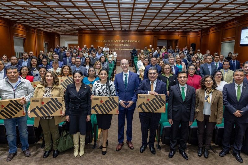 Compartir Con el propósito de establecer un proceso de mejora continua en la calidad educativa, a través del uso de las nuevas herramientas tecnológicas y digitales, el rector de la Universidad Autónoma del Estado de México (UAEMéx), Carlos Eduardo Barrera Díaz, presidió la 5° Entrega de computadoras portátiles a profesores de tiempo completo, medio tiempo, técnicos académicos y de asignatura, en la Sala “Benito Juárez García” del Edificio de Rectoría. Acompañado del secretario de Docencia, José Raymundo Marcial Romero y de la secretaria de Administración, Eréndira Fierro Moreno, Barrera Díaz comentó que la UAEMéx es una institución de nivel medio superior y superior que reconoce la labor diaria de su comunidad docente, pues en el contexto actual, se han enfrentado al uso de la inteligencia artificial y otros recursos digitales que permiten eficientar su labor diaria. En este marco, aseveró que, con el propósito de fortalecer sus actividades y desempeño académico, en esta convocatoria se entregaron 32 equipos de cómputo portátiles a profesores y profesoras de 20 espacios universitarios; sumando un total de 300 docentes favorecidos durante estas cinco etapas, de los cuales, el 60 por ciento son mujeres. Barrera Díaz felicitó a las y los beneficiados, pues con estas laptops contribuirán a la educación de calidad de la Máxima Casa de Estudios mexiquense al formar estudiantes de excelencia. Marcial Romero aseveró que la UAEMéx es una institución consciente de la importancia del uso de la tecnología en los procesos educativos, por lo que respalda el desempeño de su comunidad docente con la entrega de estas nuevas herramientas de trabajo. En este sentido, detalló que estos equipos de cómputo están habilitados para operar cualquier plataforma educativa, así como las paqueterìas más utilizadas de procesador de texto, imágenes, hojas de cálculo y presentaciones, además, poseen un procesador Intel Core i7, disco duro de estado sólido de 256 gigabytes, y pantallas de 15 pulgadas con resolución Full HD, lo cual facilitará la proyección de materiales académicos y brindará mejores herramientas de colaboración en línea. En su intervención, el docente de tiempo completo de la Facultad de Geografía y representante del profesorado beneficiado, Roberto Franco Plata, aseveró que en el contexto actual, el fomento del uso de la tecnología en las actividades académicas es elemental, por lo que agradeció a la Administración Universitaria 2021-2025 por atender las necesidades de su comunidad docente, quienes se capacitan y actualizan en el uso de las nuevas herramientas digitales. Al acto asistieron la profesora de asignatura de la Facultad de Odontología, Patricia Elizabeth Hernández Rojas; integrantes del Gabinete Universitario y del Colegio de Directores, así como la comunidad auriverde. Navegación de entradas Tiempo de priorizar la salud mental Especialistas de UAEMéx exploran la creación de piel artificial para tratar quemaduras