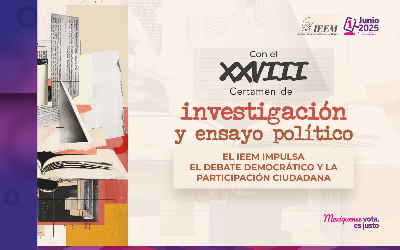 Compartir El Instituto Electoral del Estado de México (IEEM) busca reconocer y estimular la calidad académica, así como resaltar las aportaciones de la ciudadanía respecto de temas político-electorales y cultura democrática. Durante 27 años, el IEEM ha convocado a personas estudiantes, investigadoras, docentes y académicas de México a postular trabajos que contribuyan a la promoción y difusión de la cultura política democrática, para fortalecer el debate y la participación ciudadana en torno a los asuntos públicos, así como el sistema electoral y las instituciones. Desde la perspectiva de la Consejera Presidenta del IEEM, Amalia Pulido Gómez, sumar voces diversas es esencial para abordar los desafíos del sistema político-electoral desde múltiples ángulos. Esto no solo enriquece el debate democrático, también promueve una comprensión más amplia y profunda de las problemáticas que enfrenta el país, objetivo que se refuerza a través del Certamen. En convocatorias de certámenes anteriores, se han abordado temas como cultura política y ciudadanía; democracia indígena; derechos político-electorales; abstencionismo en la democracia política; el voto de los mexiquenses residentes en el extranjero; equidad de género; fiscalización de los partidos políticos; participación ciudadana; geografía electoral y medios de impugnación e instituciones electorales. Estos temas han contribuido a repensar el sistema electoral actual y reflejan las preocupaciones más apremiantes de la ciudadanía, evidenciando su relevancia en el debate público y académico. En ese sentido, el Certamen es un espacio de análisis sobre el acontecer político-electoral y de cultura política-democrática de la entidad mexiquense, con el objetivo de contribuir a una sociedad participativa, exigente y comprometida. Además, esta competición busca replicar dicho esfuerzo a nivel nacional, promoviendo un diálogo inclusivo que fortalezca la democracia y la participación ciudadana en todo el país. Para conocer más detalles sobre las categorías en que es posible participar; las características técnicas de los trabajos, y los premios económicos que se otorgarán, las personas interesadas podrán consultar las bases del certamen en el siguiente enlace: https://www.ieem.org.mx/xxviii-certamen/index.html Navegación de entradas El techo de cristal está agrietado Informe MUY tardío sobre escala logística de buque de EEUU en Veracruz
