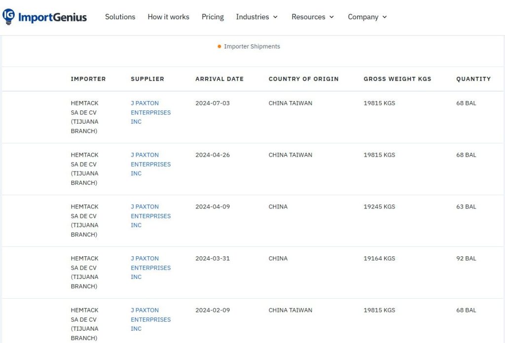 Bases de datos de importación (ImportGenius y Panjiva) corroboran que Phase II, Hemtack y Comdecora comparten proveedores asiáticos —Vinatech Trading Ltd. y J. Paxton Enterprises— consolidando una cadena de suministro binacional vinculada por las mismas direcciones y puntos de contacto.
